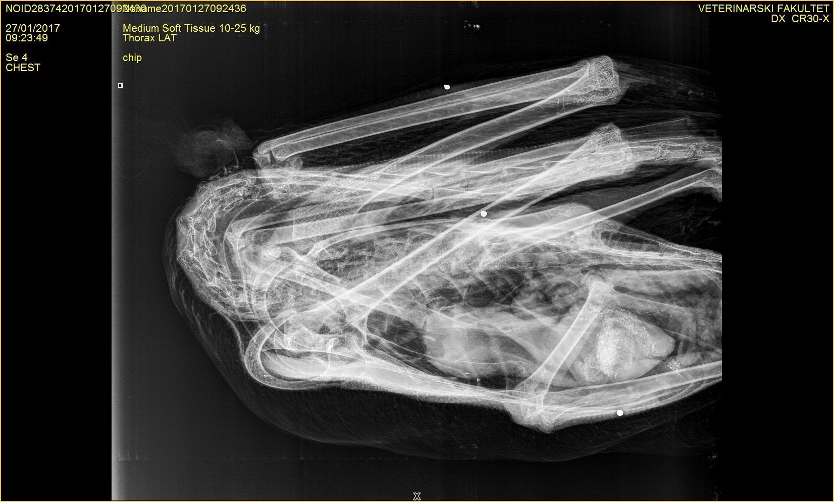 Rendgenski snimak labuda na kojem se vidi sačma