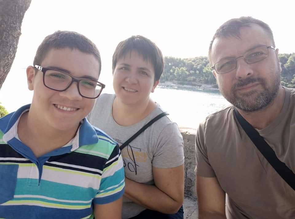 U početku nismo shvaćali da bi Antonio mogao imati ovakav zdravstveni problem koji mu je priskrbio 90% invalidnost, poteškoće sa grafomotorikom, invalidska kolica… U vrtićkoj dobi problemi su bili sa usporenim govorom, nesigurnijom grafomotorikom tako da je bez ikakvih problema upisan i pohađao vrtić. Kako je rastao problemi su postojali očitiji ali i naša i njegova volja da se ne predajemo bez borbe. Odgodili smo upis u osnovnu školu za godinu dana. Sjećam se da nam je u to vrijeme stan bio oblijepljen posterima abecede jer je Antonio zaostajao u usvajanju čitanja za razliku od sestara koje su u toj dobi izvrsno čitale i pisale. No kad je u drugom polugodištu prvog razreda uočen velik napredak jer je od slabog čitača postao među boljima u razredu vidjeli smo da se trud isplatio i svi ti posteri po zidovima i učenje uz igru.