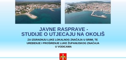 *Prenosimo objavu Šibensko-kninske županije: Upravni odjel za zaštitu okoliša, prostorno uređenje, gradnju i komunalne poslove Šibensko-kninske županije objavio je dvije javne rasprave vezane uz studije o utjecaju na okoliš. Predmet prve studije je izgradnja luke otvorene za javni...