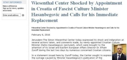 – Puka činjenica da Hasanbegović objavljuje takvo smeće koje reklamira na web stranici dobro poznate rasističke organizacije Stormfront dovoljan je razlog da ga se ukloni s pozicije ministra – smatra dr. Zuroff