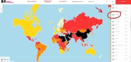 Hrvatska je trenutačno 59. zemlja na svijetu po Svjetskom indeksu slobode tiska 2020., kojega su priredili Reporteri bez granica (RSF), međunarodna organizacija koja se bavi praćenju medijskih sloboda u svijetu. Hrvatska se tu smjestila iza Nigera i Bosne i Hercegovine.